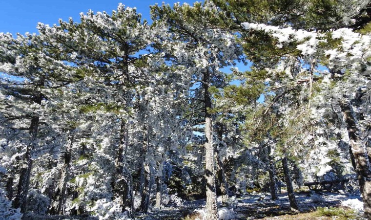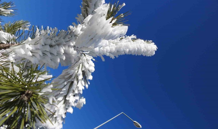 Spil Dağı Milli Parkında 3 gündür eksi 5 dereceye varan soğuk hava nedeniyle ağaç dallarında ve kuruyan dallarda oluşan kırçıllar ise kartpostallık görüntüler oluşturdu.