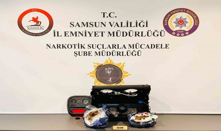 Samsun’da narkotik polisinin takibi sonucu, kargo ile gönderilen ses sisteminin içine zulalanmış 1 kilo 100 gram skunk ele geçirildi.