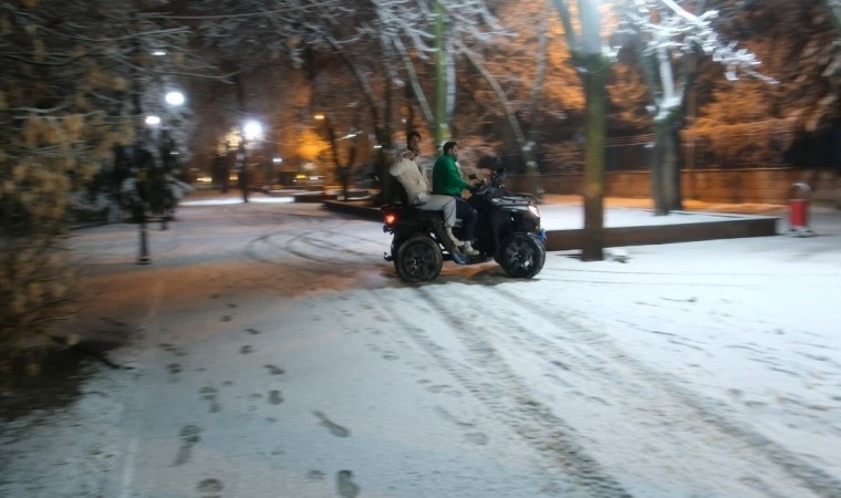 Bazı vatandaşlar da karın keyfini çıkardı. Erzincan kent merkezinde bulunan Barış Manço Parkı içerisinde trafiğe kapalı alanda 4x4 ATV ile drift yapan gençler dikkat çekti. Bir süre drift yapan iki genç daha sonra parktan ayrıldı.