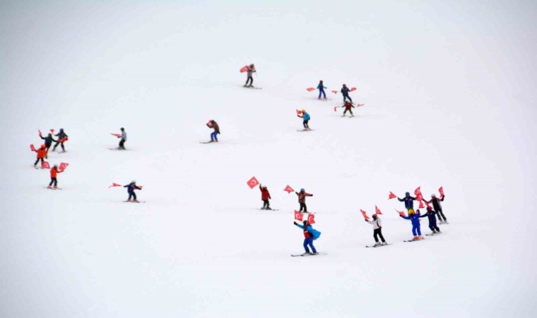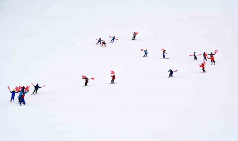Etkinlik 12 gün sürecek. Etkinliğe kayak yapmayı bilen ortaokul öğrencileri de ellerinde Türk Bayraklarıyla katılarak gösteri yaptı.