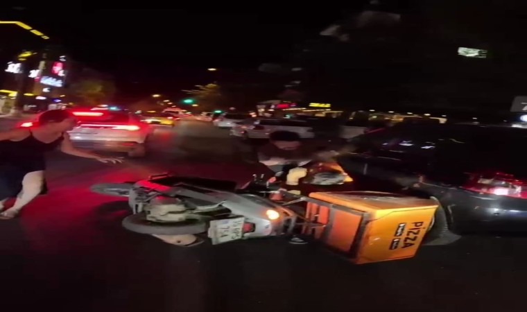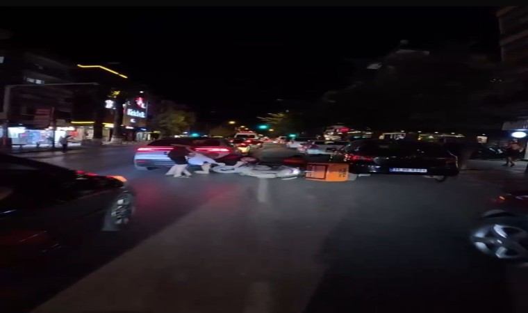 İzmir’in Buca ilçesinde motosikletli kurye, seyir halindeyken ailesiyle yolun karşısına geçmeye çalışan bir kadına çarptı. O sırada çocuğunu son anda kurtaran ve karısını yerde gören adam, öfkeyle kuryeye saldırarak tepki gösterdi. O anlar kask kamerasına yansıdı.