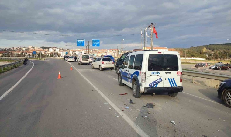 İhbar üzerine kaçan aracı takibe alan jandarma ekiplerinin dur ihtarlarına uymayan sürücü, Enez Kavşağı yakınlarına geldiği sırada, önünde giden Keşan İlçe Emniyet Müdürlüğü’ne ait polis otosuna çarptıktan sonra durdu. Jandarma ekipleri M.T.’yi araçtan indirdi. Hafif yaralanan sürücü, Keşan Devlet Hastanesi’ne kaldırılarak tedavi altına alındı.