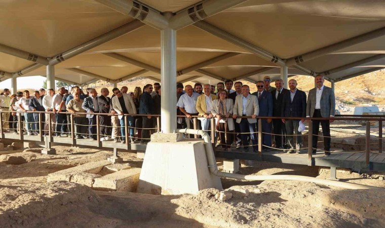 Konuşmaların ardından kesilen kurdele ile koruyucu çatının açılışını yapan protokol üyeleri, daha sonra kazı alanını gezerek incelemelerde bulundu. Törene Dünya Etnospor Konfederasyonu Genel Başkanı Bilal Erdoğan, Gaziantep Valisi Kemal Çeber, Büyükşehir Belediye Başkanı Fatma Şahin, AK Parti Grup Başkanvekili ve Gaziantep Milletvekili Abdülhamit Gül, Sanko Holding Yönetim Kurulu Başkanı Adil Sani Konukoğlu, milletvekilleri, ilçe belediye başkanları, kent protokolü ve çok sayıda vatandaş katıldı.