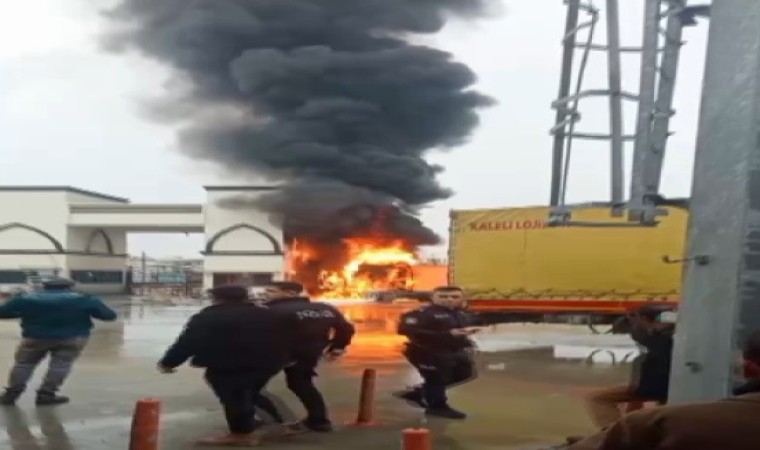 Karkamış Sınır Kapısı’nda bekleyen tır, akü değişimi sırasında kıvılcımların yakıt deposuna sıçraması sonucu alev topuna döndü. Yangın sırasında alevler sınır kapısına da sıçradı.