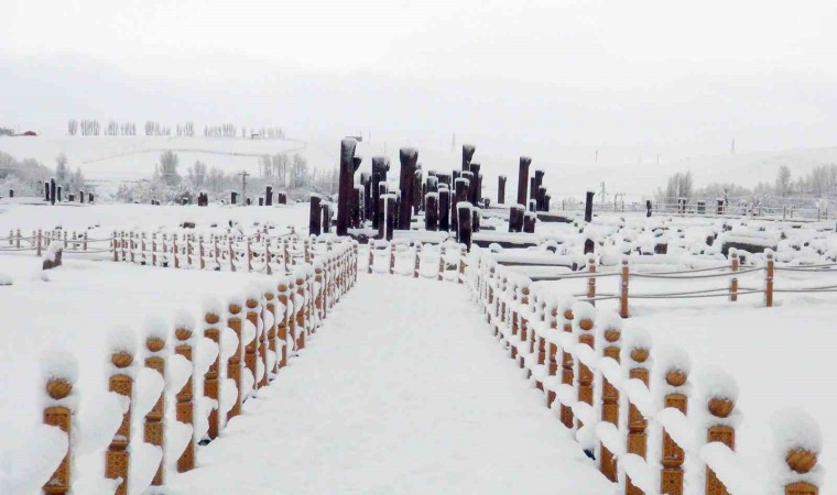 Doğu Anadolu Bölgesinde etkili olan kar yağışı hayatı olumsuz etkilerken, tarihi bir kent olan Bitlis’in Ahlat ilçesindeki Selçuklu Meydan Mezarlığı ise beyaz örtüyle kış güzelliğine büründü.
