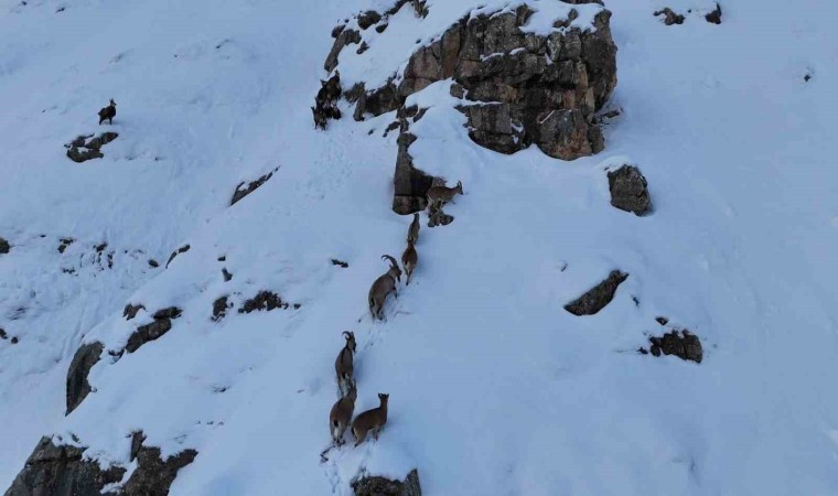 Türk Silahlı Kuvvetlerinin (TSK) başarılı operasyonlarıyla terörden temizlenen 3 bin 300 rakımlı Munzur Dağlarında yabani hayvan popülasyonu arttı. Çok sayıda yaban keçisi karlı dağlarda dron ile görüntülendi. Yaban keçilerinin kameraya yansıyan sevimli halleri ise izleyenlerin içini ısıttı.