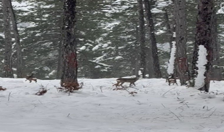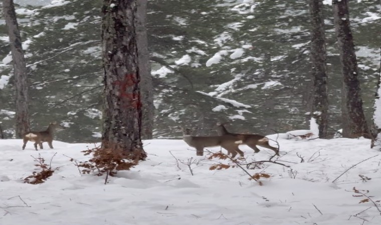 Kastamonu Orman Bölge Müdürlüğüne bağlı Samatlar Orman İşletme Müdürlüğü ekib, ormanlık alanda çalışma yaptıkları sırada, karla kaplanan ağaçların arasındaki 3 karaca ile karşılaştı. Orman ekibi, cep telefonu ile karacaları görüntüledi. Konu ile ilgili Kastamonu Orman Bölge Müdürlüğü’nden yapılan paylaşımda, “Ormanda sadece ağaçlar yok, güne can dostlarımız ile başlıyoruz” ifadeleri kullanıldı.