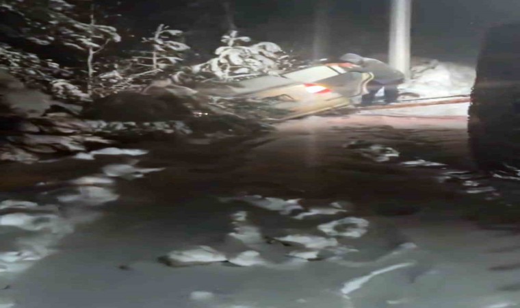 Sakarya’nın Pamukova ilçesinde karla kaplanan yayla yolunda kontrolden çıkarak yol kenarında savrulan ve mahsur kalan otomobil ekiplerce kurtarıldı.
