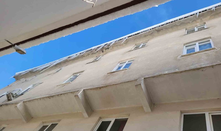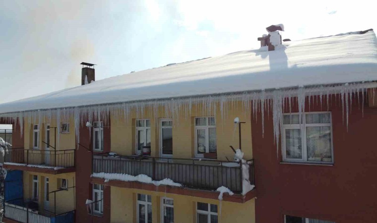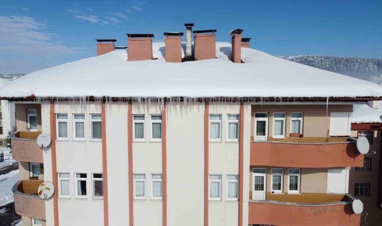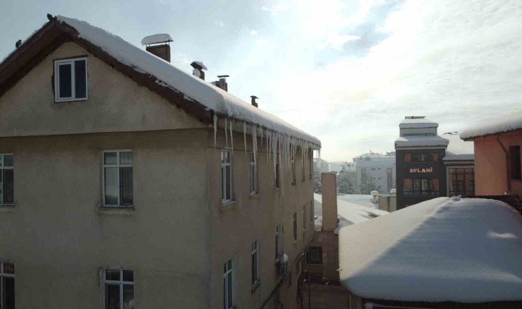 Karabük’ün Eflani ilçesinde kar yağışının ardından binaların çatılarında sarkıtlar oluştu.