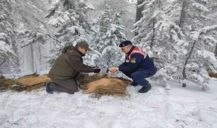 Yaklaşık bir aydır karla kaplı Kazdağları’nda kış aylarında yiyecek sıkıntısı yaşayan yaban hayvanları ile kuş türlerinin zorlu şartlarda aç kalmasını önlemek ve yerleşim merkezlerine inmesinin önüne geçmek amacıyla yaban hayatına yem takviyesi yapıyor.