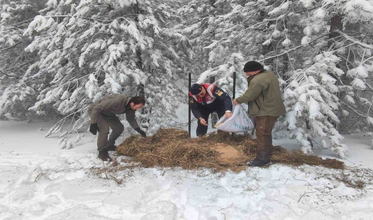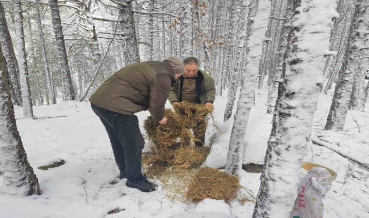 Milli Park sınırları içerisinde kalan yaklaşık 1.5 metre kar kalınlığının bulunduğu dağlık araziye, karacalar için saman, kuşlar için de yem bırakıldı.