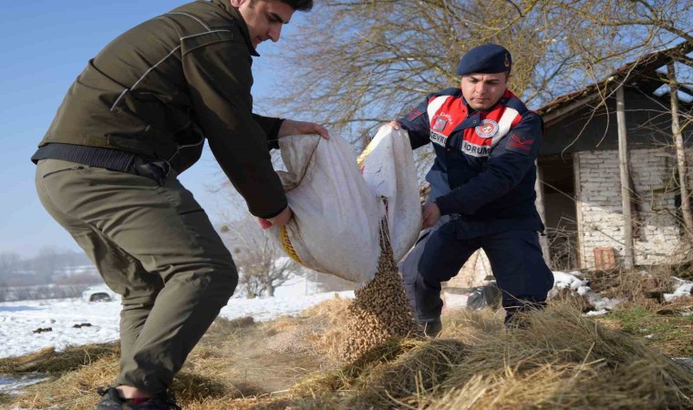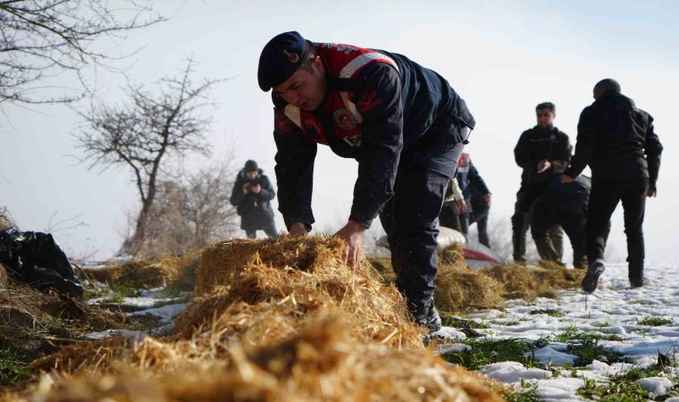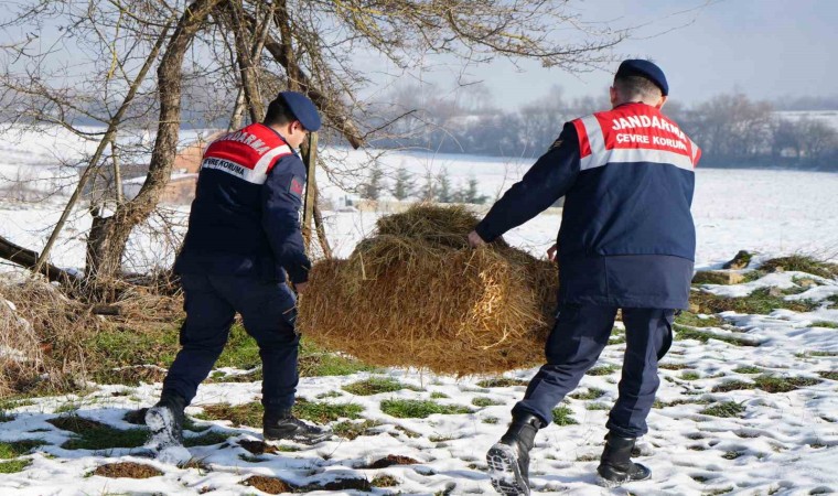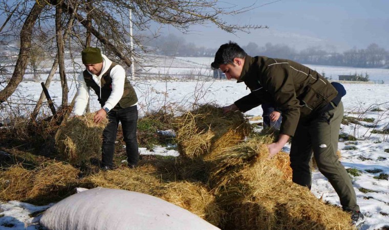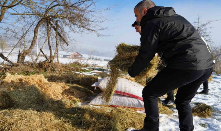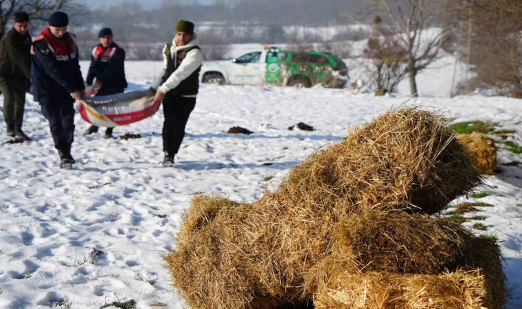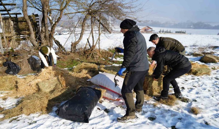 Bolu’da Doğa Koruma ve Milli Parklar Şube Müdürlüğü ile jandarma ekipleri, yiyecek bulmakta zorlanan yılkı atları için karla kaplı yaylaya saman ve besi yemi bıraktı.