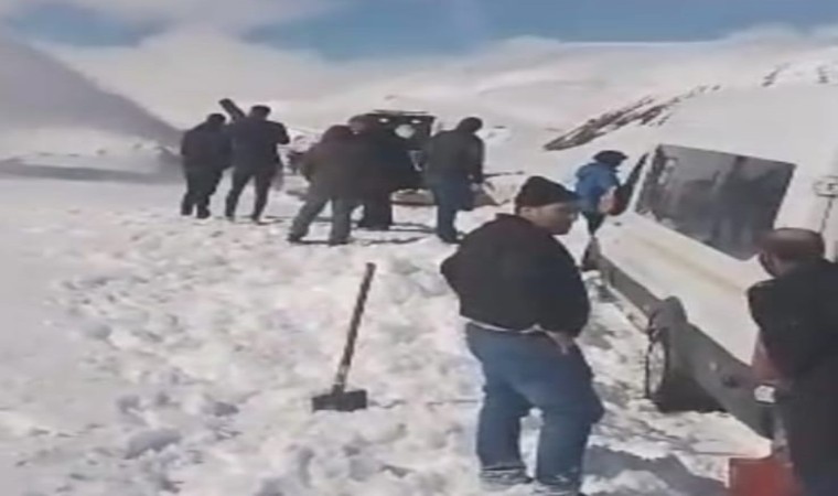 Erzurum ile Tekman ilçesini bağlayan Palandöken Geçidi yoğun kar yağışı nedeniyle kapanınca vatandaşlar küreklere sarıldı.