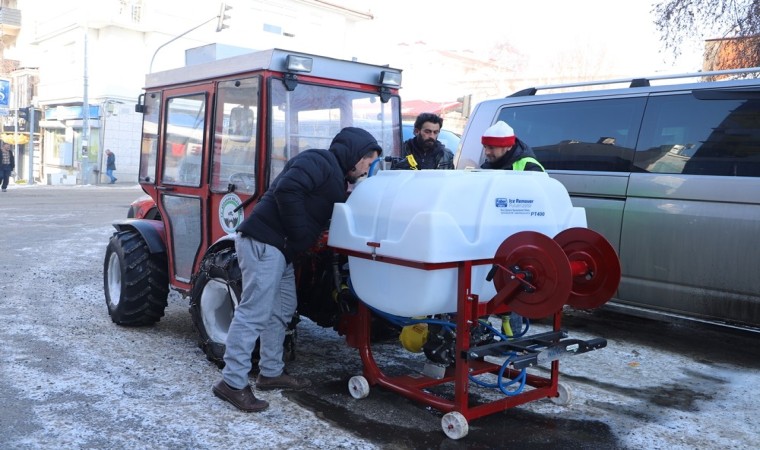Faber Kimya sahibi İlhami Yavuz tarafından hibe edilen ‘Buz Çözücü Solüsyon Serpme Makinesi’ sayesinde artık yol ve kaldırımlardaki buzların çözülmesi ve temizlenmesi çabucak gerçekleştirilecek.