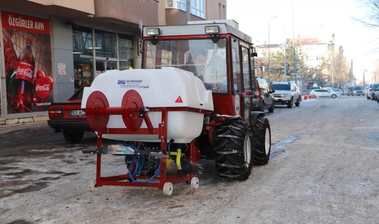 Belediye Başkanı Faruk Demir’in girişimleri sonucu Faber Kimya sahibi Kimya Mühendisi İlhami Yavuz’un belediyeye hediye ettiği buz çözücü solüsyon serpme makinesi ile hem kaldırım ile yollardaki buzların hızlı ve rahat bir şekilde çözülmesi sağlanacak hem de asfalt ve kaldırımların zarar görmesinin önüne geçilecek.