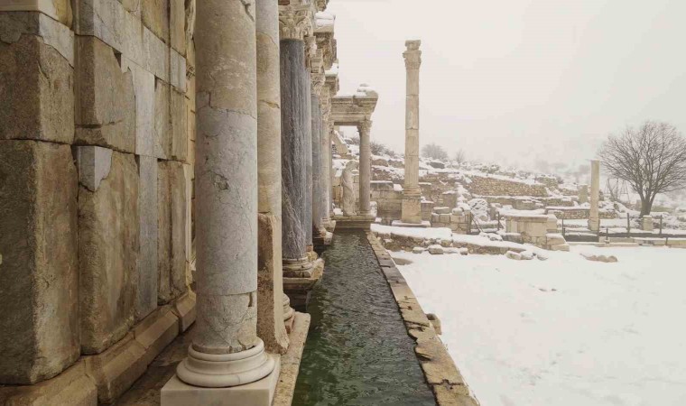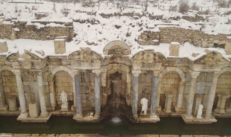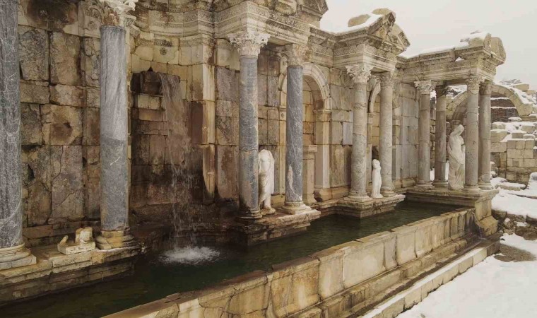 2023 yılında bölgeye yağan ilk karın ardından beyaza bürünen antik kentin dron kamera ile çekilen görüntülerinde Antoninler Çeşmesi’nin hiç durmadan akan suyu ve ziyaretçilerine tarihi tekrar yaşatan antik kalıntılarının beyazla uyumu seyir zevki oluşturdu.