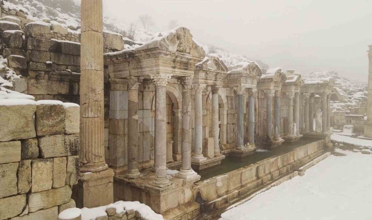 Burdur’un Ağlasun ilçesinde bulunan ve Antik Psidia kentinin aristokratlar şehri olan Sagalassos mevsimin ilk karının yağmasıyla beyaza büründü. Başta Antoninler çeşmesi olmak üzere bir çok tarihi yapıyı barındıran antik kent karlı ve sisli manzarasıyla ziyaretçilerine seyir zevki sundu.