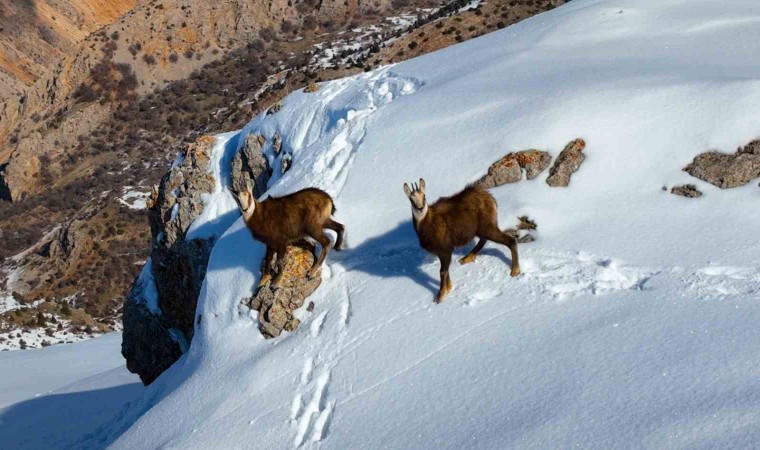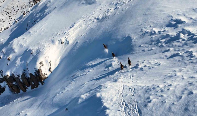 Bir zamanlar terör endişesi duyulan Tunceli ile Erzincan arasındaki Munzur Dağları’nda Erzincan ve Tunceli Jandarma Komutanlığı timleri, Kemah, Pülümür, Ovacık kırsallarında gerçekleştirdikleri başarılı operasyonlarla terörün sonunu getirdi. Bununla birlikte terörden temizlenen Munzur Dağlarında yabani hayvan popülasyonunda artış gözlendi. Karla kaplanan Munzur Dağlarında nesli tükenme tehlikesi altında bulunan birçok yabani hayvan objektiflere yansımaya başladı. 3 bin 300 rakımlı Munzur Dağlarının karlı zirvesinde ve zaman zaman da bin rakımlı aşağı kısımlara inen yaban keçileri bu kez 2 bin 800 rakımda göç yolunda sürüler halinde görüntülendi. Doğa Koruma Birliğinin (IUCN) yayımladığı Nesli Tükenme Tehlikesi Altında Olan Türlerin Kırmızı Listesi’nde bulunan, avlanması yasak ve koruma altındaki tür olan çengel boynuzlu (şamua) ve dağ keçileri sürüler halinde, belgesel tadında drone ile görüntülendi.