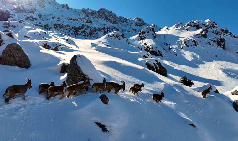 Türk Silahlı Kuvvetlerinin (TSK) başarılı operasyonlarıyla terörden temizlenen 3 bin 300 rakımlı Munzur Dağları’nda yabani hayvan popülasyonu arttı. Çok sayıda yaban keçisinin karlı dağları aşarak göç yoluna koyulması dron ile görüntülendi. Görüntüler belgeselleri aratmadı.