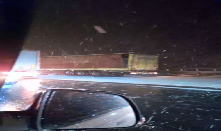 Anadolu Otoyolu’nun Bolu Dağı geçişinde aniden duran tıra, arkasından gelen başka bir tır çarptı. Kaza nedeniyle bölgede trafik Ankara istikametine tek şeritten kontrollü olarak sağlandı.