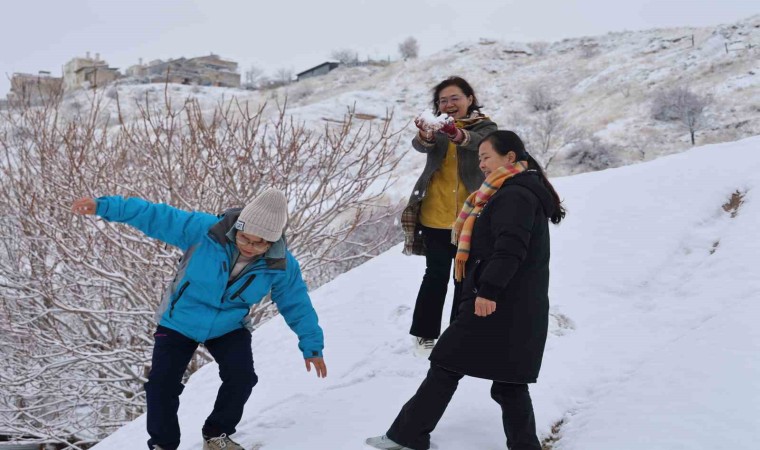Çin’den gelen Liu Hong yaptığı açıklamada, "Çin’den geliyoruz. Bugün tesadüfen kar manzarası ile karşılaştık. Kapadokya’daki vadileri ve bu kaleyi gördüm. Çok güzeller. Kar manzaraya ayrı bir parlaklık ve canlılık katmış" dedi.