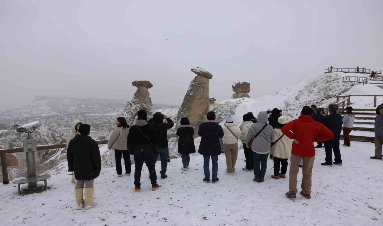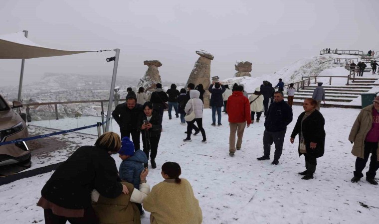 Nevşehir’de dün gece saatlerinde başlayan kar yağışı, Kapadokya bölgesini de etkisi altına aldı. Sabahın erken saatlerinde bölgeye gelen turistler hem karın hem de manzaranın tadını çıkardı. Kar yağışı, Kapadokya bölgesini gezmeye gelen yerli ve yabancı turistler için eşsiz bir doğa görüntüsü oluşturdu. Karlar altındaki peribacaları, bölgeyi gezen fotoğraf meraklısı yerli ve yabancı turistler için de mükemmel enstantaneler verdi.