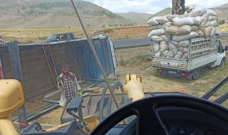 Bingöl’ün Karlıova ilçesinde saman yüklü kamyon devrildi, kazada yaralanan olmadı.