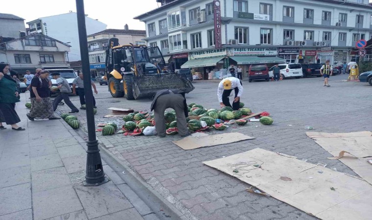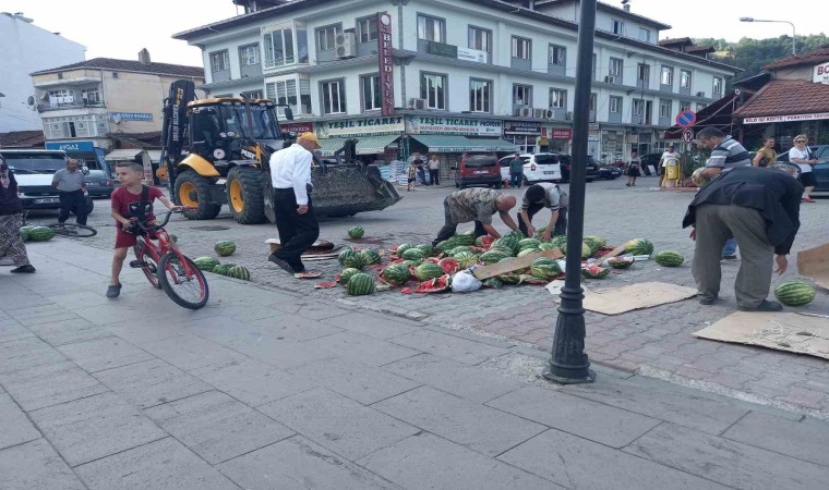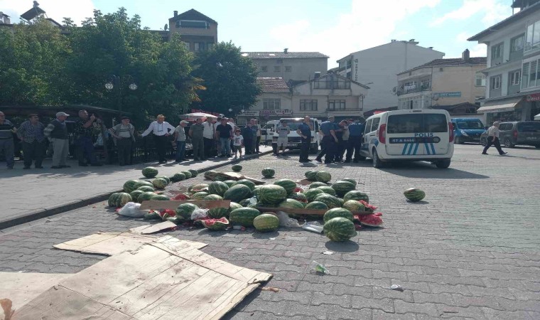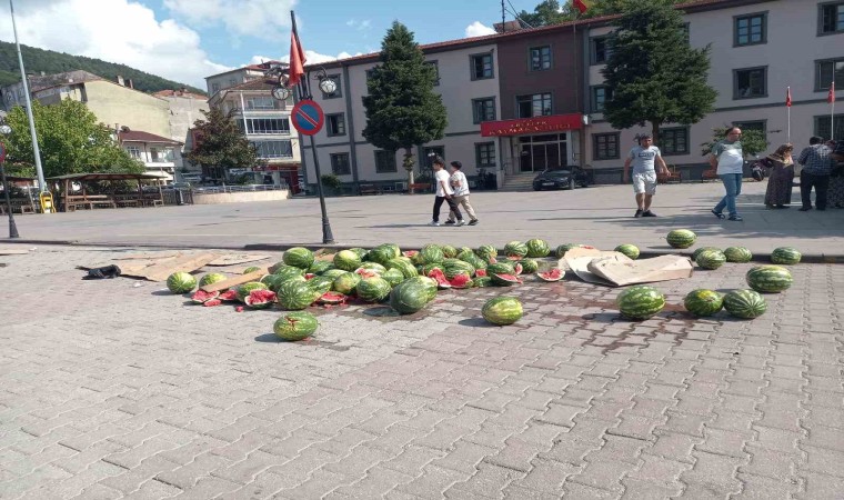 Sinop’un Erfelek ilçesinde karpuz satışı yapmak için belediyeden izin almak isteyen vatandaş belediyenin kendisine yer göstermemesine sinirlenerek satmak için getirdiği karpuzları Erfelek Kaymakamlığı önünde parçalayarak yere döktü. Sinirli vatandaş olay yerinden uzaklaşırken yere dökülen karpuzlar Erfelek Belediyesine ait kepçe ile olay yerinden kaldırıldı.