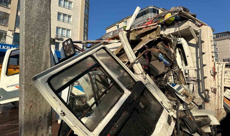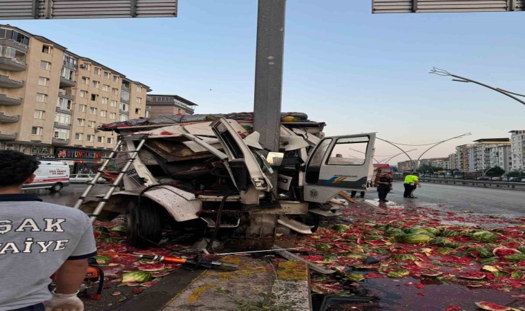 Uşak’ta karpuz yüklü kamyonun yön tabelasına çarpması sonucu, sürücü olay yerinde hayatını kaybetti.