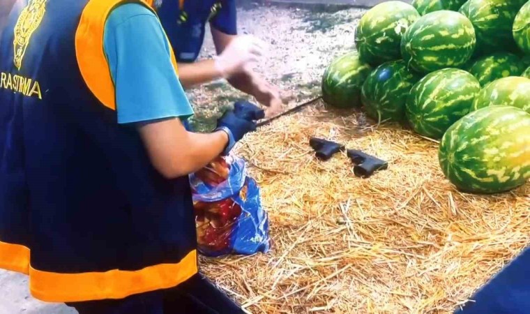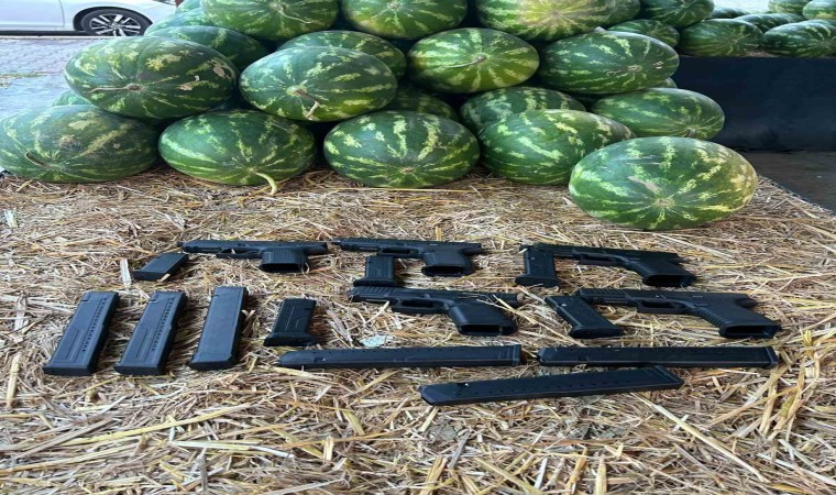 Adana’da Seyhan polisi seyyar karpuzcuya yaptığı baskında karpuz tezgahının altında 5 ruhsatsız tabanca ele geçirdi. Olayla ilgili 2 şüpheli gözaltına alındı.