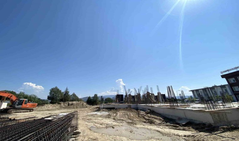 Aydın’ın Karpuzlu ilçesinde yeni hükümet konağı için inşaat çalışmaları tüm hızıyla sürüyor.