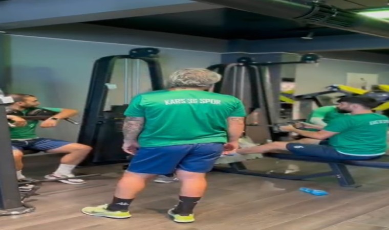 Kars 36 Spor, 2023-2024 futbol sezonu hazırlıklarını sürdürüyor. Yeşil beyazlı ekip, bir spor salonunda güç depoluyor.
