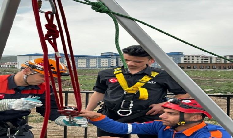 AFAD ekiplerince yeni personele yönelik mahsur kalma olaylarına karşı müdahalede önemli bir yere sahip olan ip ve düğüm çeşitleri anlatıldı. Makara sisteminin nasıl çalıştığı gösterildi.