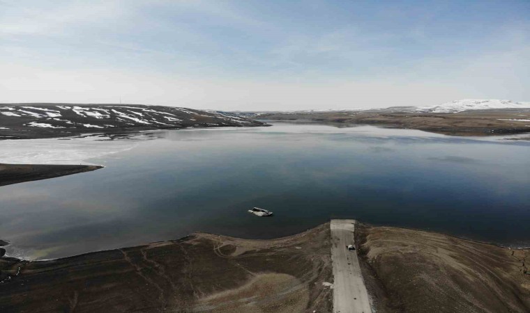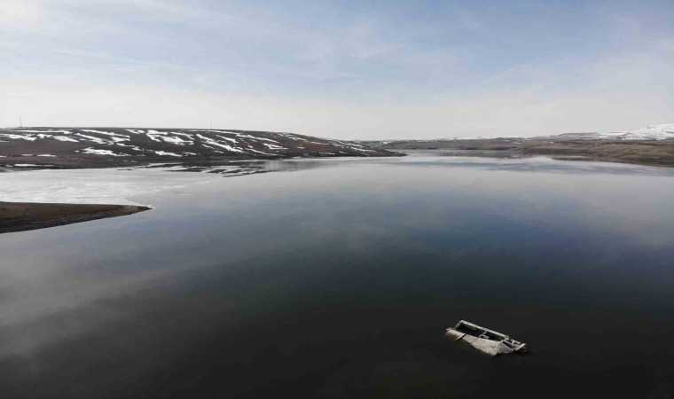Kışın yüzeyi yaklaşık 40 santim buz kalınlığına ulaşan ve buzla kaplanan Kars Baraj Gölü sıcak havadan dolayı tamamen çözüldü.
