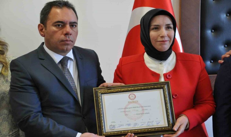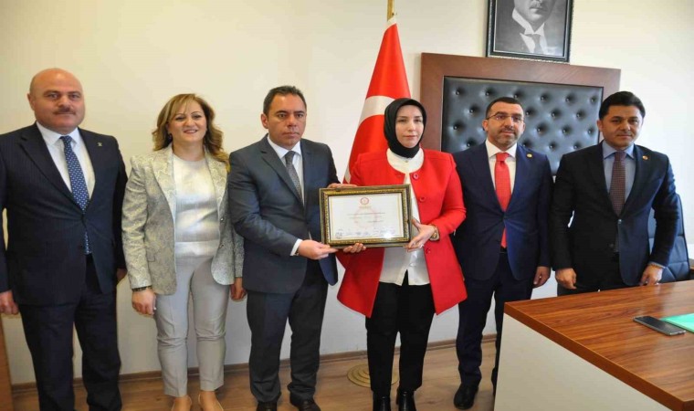 Prof. Dr. Ötüken Senger, İl Seçim Kurulu Başkanı Hakim Hülya Akkaş’tan mazbatasını aldı.