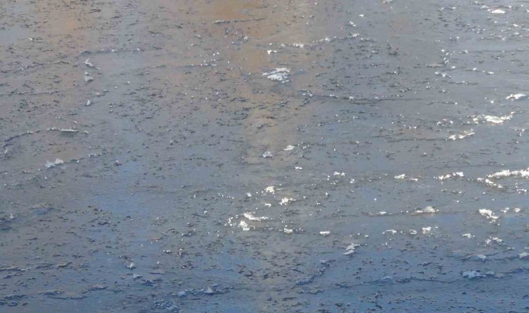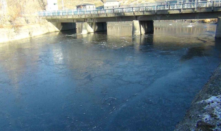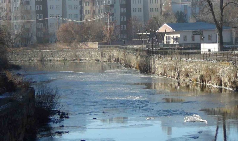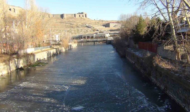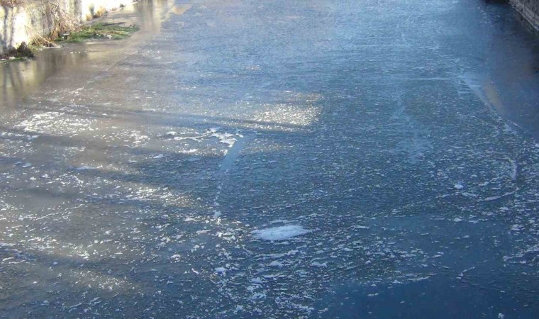 Hava sıcaklığının gece sıfırın altında 14 dereceye düşmesiyle birlikte çağlayarak akan Kars Çayı’nın yüzeyi bir günde kısmen dondu.