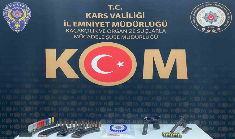 Kars Emniyet Müdürlüğü Kaçakçılık ve Organize Suçlarla Mücadele (KOM) Şube Müdürlüğü ve Narkotik Suçlarla Mücadele Şube Müdürlüğü Kars merkez ve bağlı Akbaba köyünde yapılan eş zamanlı operasyon neticesinde 2 ikametten 2 parça halinde toplam 52,1 gram metamfetamin, 2 adet ruhsatsız tabanca, 2 adet tabanca şarjörü, 42 adet tabanca fişeği, 3 adet uzun namlu şarjörü, 31 adet uzun namlu fişeği, 1 adet av tüfeği şarjörü ve 11 adet kartuş ele geçirildi. Polis operasyonlarında 3 şahıs hakkında TCK-188 Uyuşturucu Madde Ticareti Yapmak ve 6136 sayılı Ateşli Silahlar ve Bıçaklar ile Diğer Aletler Hakkında Kanun’a Muhalefet suçlarından adli işlem yapılarak gözaltına alındı. Adli makamlara sevk edilen M.İ (33) isimli şahıs tutuklandı.