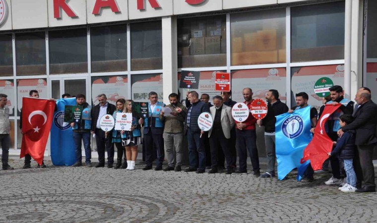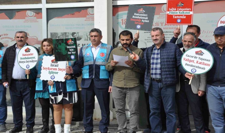 Kars’ta bir araya gelen sağlık çalışanları İsrail hastaneleri hedef almasına tepki gösterdi.