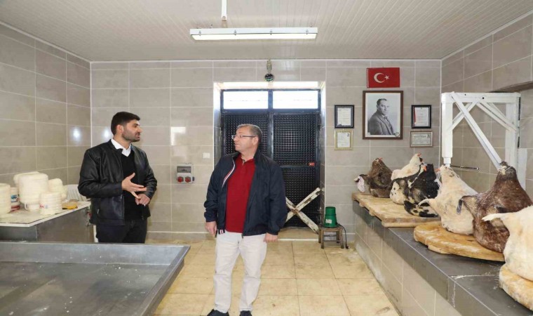 Polat, köyde oluşturulan ve çeşitli tarihi, kültürel ve peynir üretiminde kullanılan malzemelerin sergilendiği müzede incelemelerde bulundu.