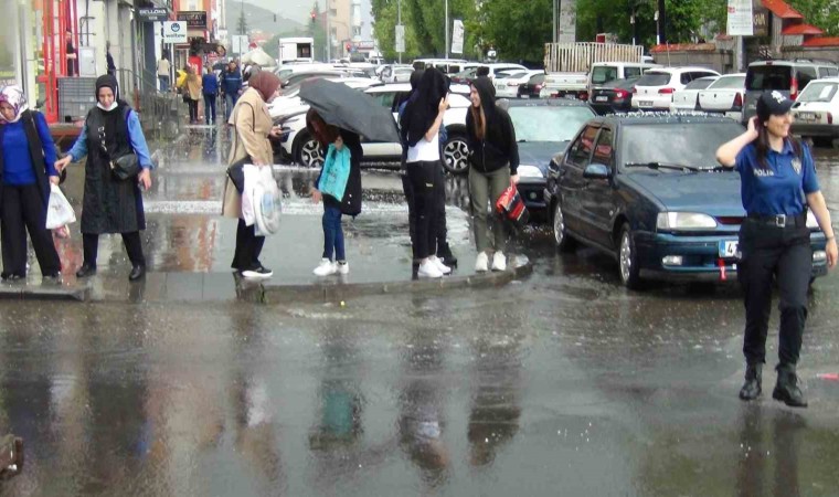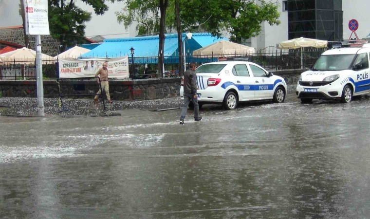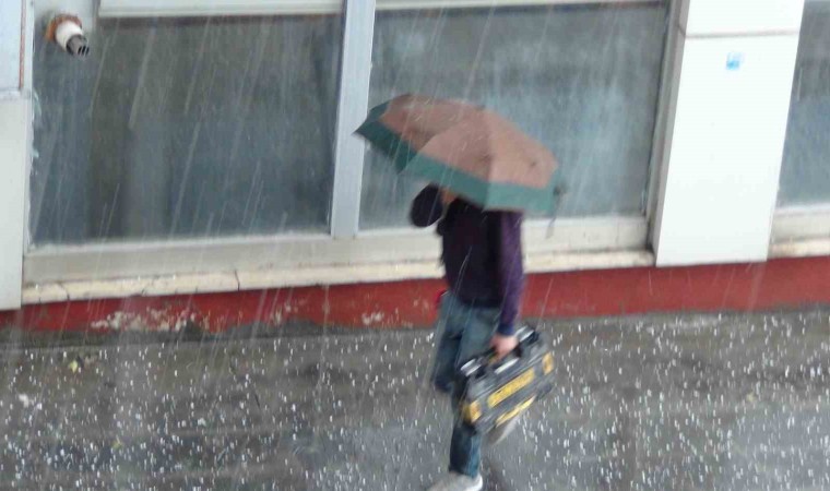 Kentte etkili olan sağanak yağmur ve dolu hayatı olumsuz etkilemeye devam ediyor. Yaklaşık 15 dakika yağan dolu, bir anda etrafı beyaza bürürken, kentin ana caddeleri sular altında kaldı.