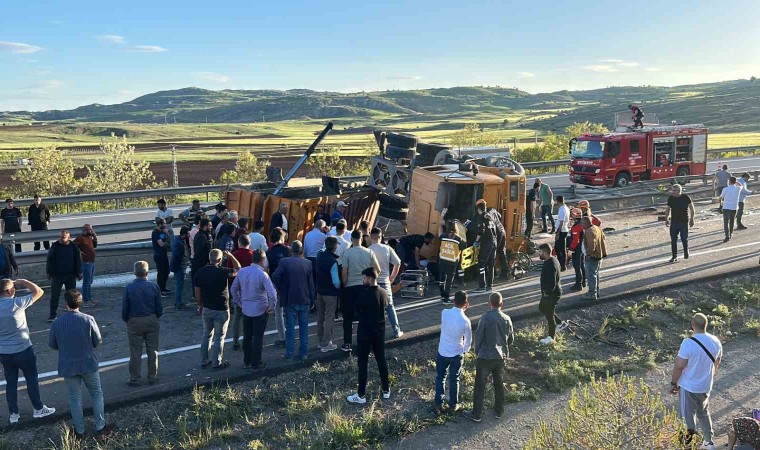 Sivas-Erzincan karayolunda kontrolden çıkan kamyonun karşı şeride geçerek devrildiği kazada 1 kişi öldü, 2 kişi yaralandı.