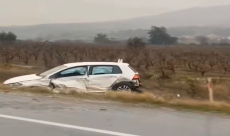 Denizli’nin Buldan ilçesinde seyir halindeki araç kontrolü kaybetmesi sonucu karşı şeritteki seyir halindeki araca çarptı. Çarpma sonucu yol kenarındaki tarlaya savrulan iki araç hurdaya döndü.