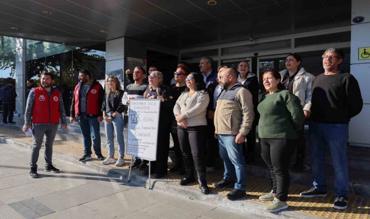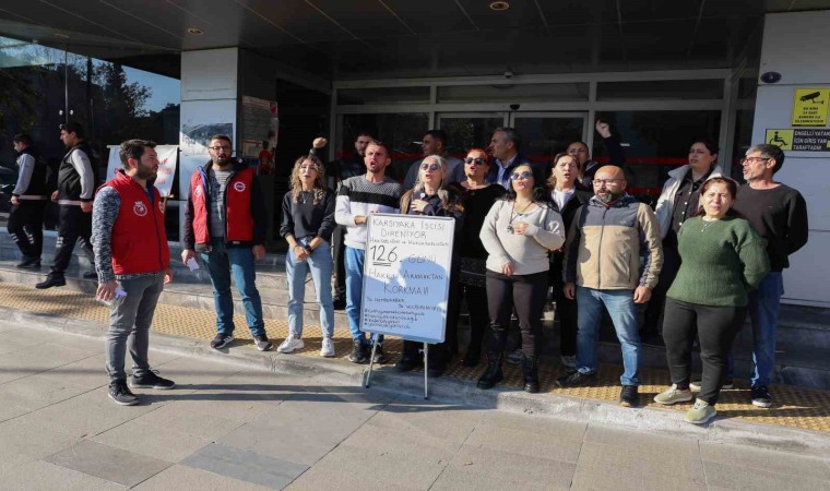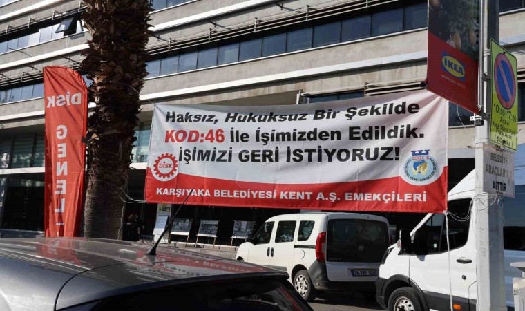 Hem işe dönüş için hem de bu işten çıkış kodlarını yargıya taşıyan işçiler, Karşıyaka Belediyesi önündeki eylemlerine de devam ediyor.