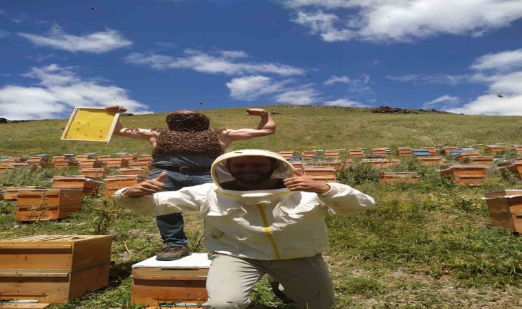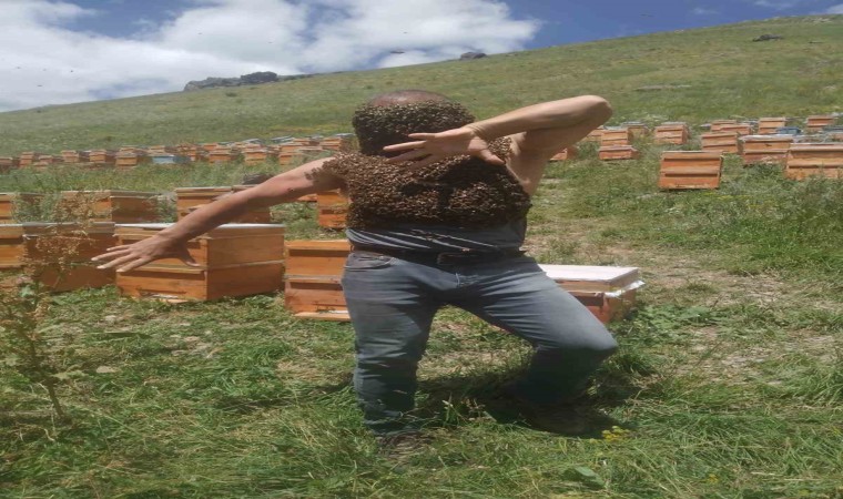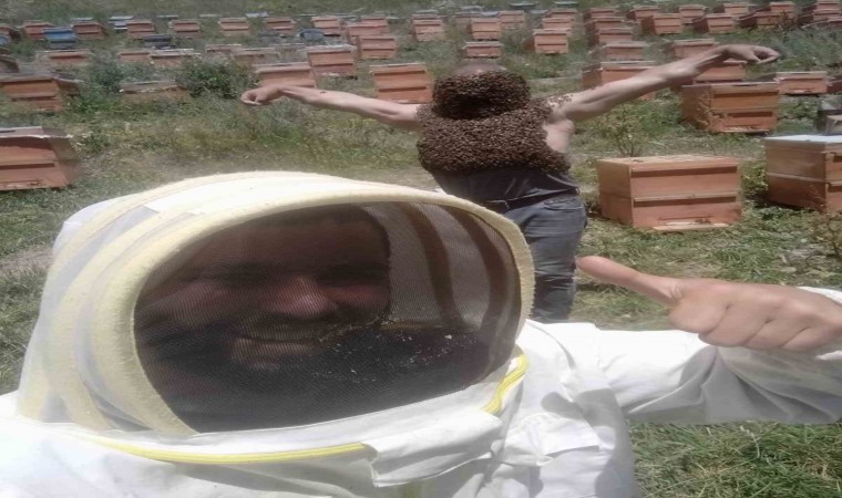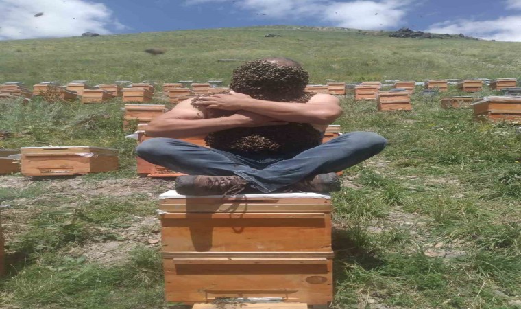 Karslı arıcı, adeta sınırları zorladı. Binlerce Kafkas arısını vücuduna alan vatandaş, adeta arı adam oldu.