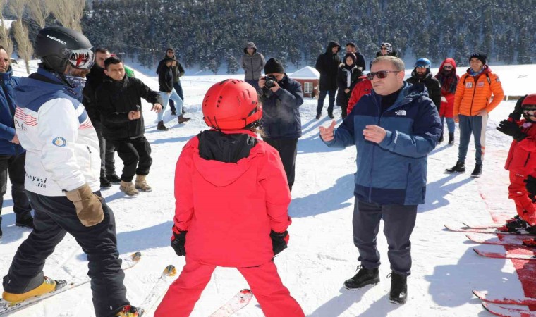 Vali Ziya Polat, Sarıkamış Osman Yüce Kayak Tesisleri’nde kayak yapmayı öğrenen öğrencilerle bir araya geldi. Polat, bir süre öğrencilerle sohbet etti. Öğrencilerle birlikte kayak kaydı.