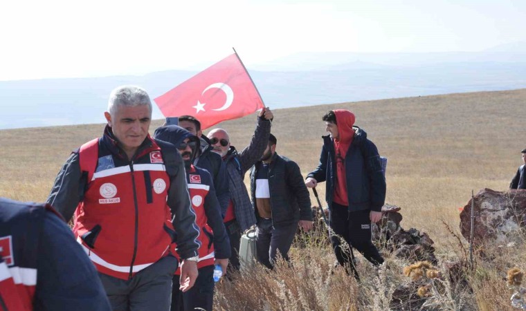 Cumhuriyet’in 100. yıl dönümü etkinlikleri çerçevesinde Karslı dağcılar ve gençler, 2 bin 254 rakımlı Yahni Dağı’na yürüyüş düzenledi.