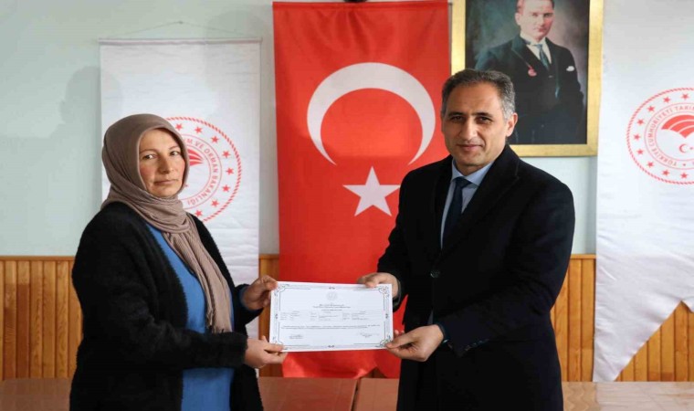 Kurslara katılan ve başarıyla tamamlayan sertifika almaya hak kazanan kadın çiftçilere sertifikalarını Arpaçay Kaymakamı Muhammed Burak Akköz verdi.