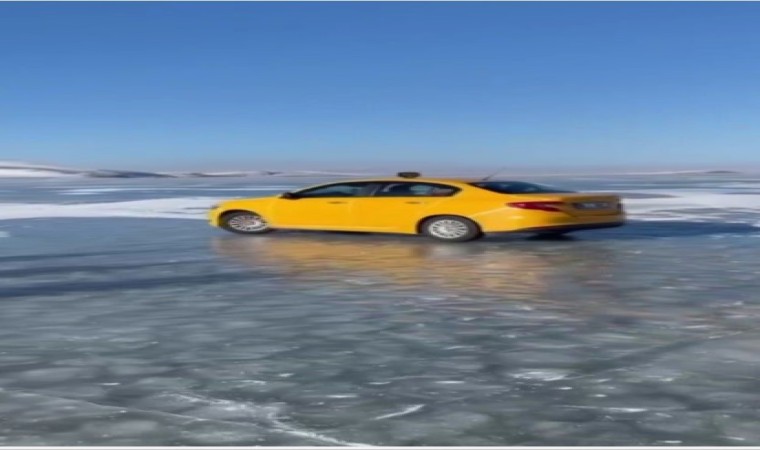 Kars’ın Arpaçay ilçesi Taşbaşı köyü bölgesinde bulunan Çıldır Gölü yerli ve yabancı turistlere ev sahipliği yapıyor. Kars’tan Taşbaşı köyüne müşterilerini götüren taksici, müşterilerini bıraktıktan sonra yaklaşık 30 santim buz kalınlığına ulaşan göl üzerine taksisiyle çıkarak gövde gösterisi yaptı. O anlar bir vatandaş tarafından kaydedildi.