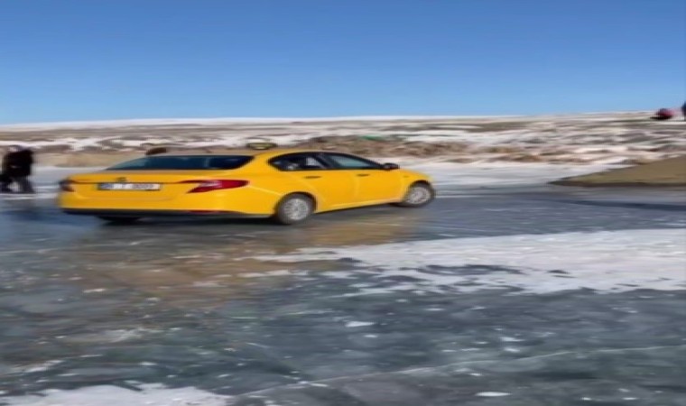 Buz tutan Çıldır Gölü, her gün bir farklı görüntüye ev sahipliği yapıyor. Çıldır Gölü’ne gelen Karslı taksici buz tutan göl üzerine taksisiyle çıktı. O anlar cep telefonuyla kaydedildi.
