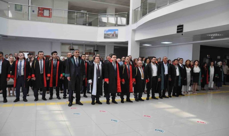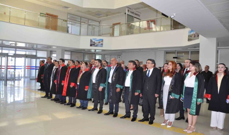 Kars Adliye Sarayı’nda düzenlenen tören, Saygı duruşu ve İstiklal Marşı’nın okunması ile başladı.